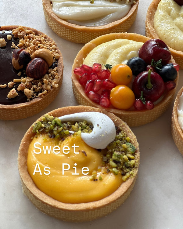We keep it simple and high quality: real butter, local fruit, flour, sugar, eggs and quality chocolate. No premixes, no shortcuts. Many of our pies and tarts are made fresh daily in small batches.